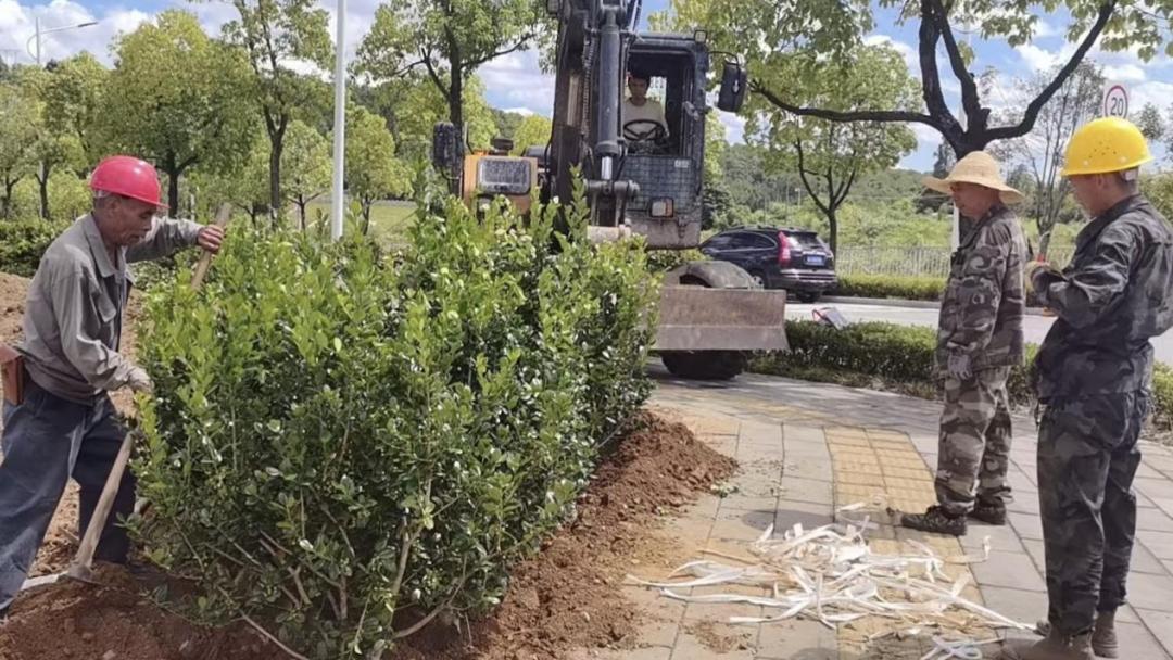 該項目時間緊、任務重,山點水公司迅速響應,組織專業的綠化設計人員和施工團隊,對林后大街周邊的綠化區域進行重新規劃和布局,明確各個區域的綠化目標和任務,制定詳細的施工計劃和時間表,實行“兩班倒”作業,全力推進工程進度。